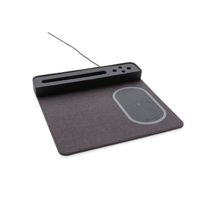 Quickly power up your smartphone by cable or any mobile device that supports wireless charging by simply setting it down on the right side of the mousepad. Sleek, slim rectangular mousepad design with anti-slip back comes with phone stand and 4 pen stands. Including 1.5m cable. Input: 5V/1A; Output 5V/1A; Wireless output: 5V/1A 5W.