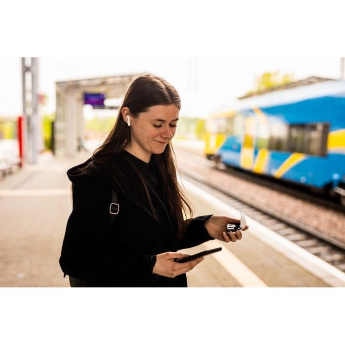 Wireless earphones 2×30 mAh with ANC (Active Noise Cancellation), charging station 200 mAh, BT 5.0, music play and answering calls function, USB rechargeable, working time: approx. 2h, charging station with digital display of power level, working distance up to 10 m, USB-C cable included