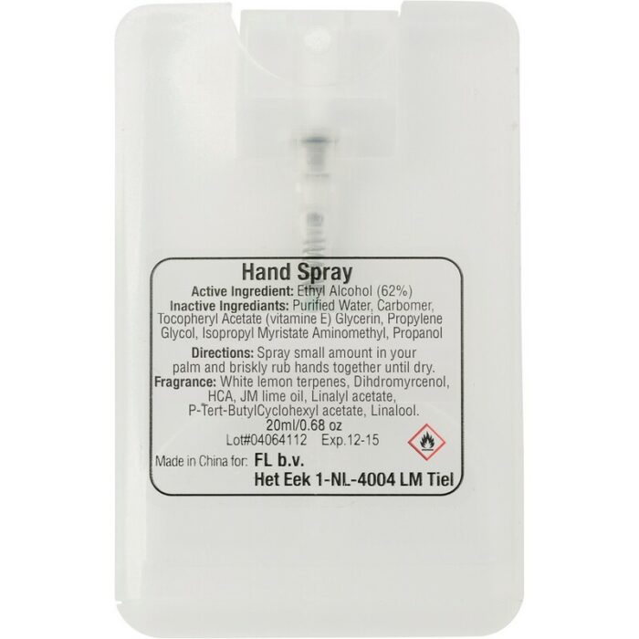 Antibacterial hand spray in credit card shaped case, 20 ml