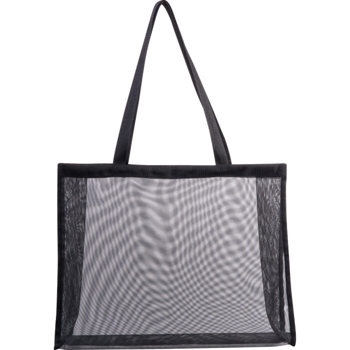 Large, transparent beach or shopping bag made of polyester with long carrying handles with a big main compartment.