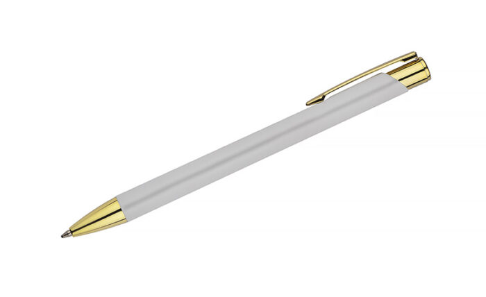GOLDEN is a pen distinguished by a nice in touch rubber surface and exceptionally elegant gold finishes. The body is made of aluminum. The possibility of engraving a logo in gold, which perfectly matches the finishes of the pen. Automatic pen. Blue G2 refill.