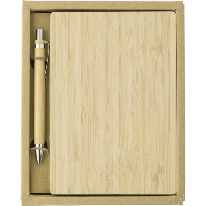 Bamboo notebook (approx. B6, 128 lined sheets), bamboo pen attached, kraft paper box included