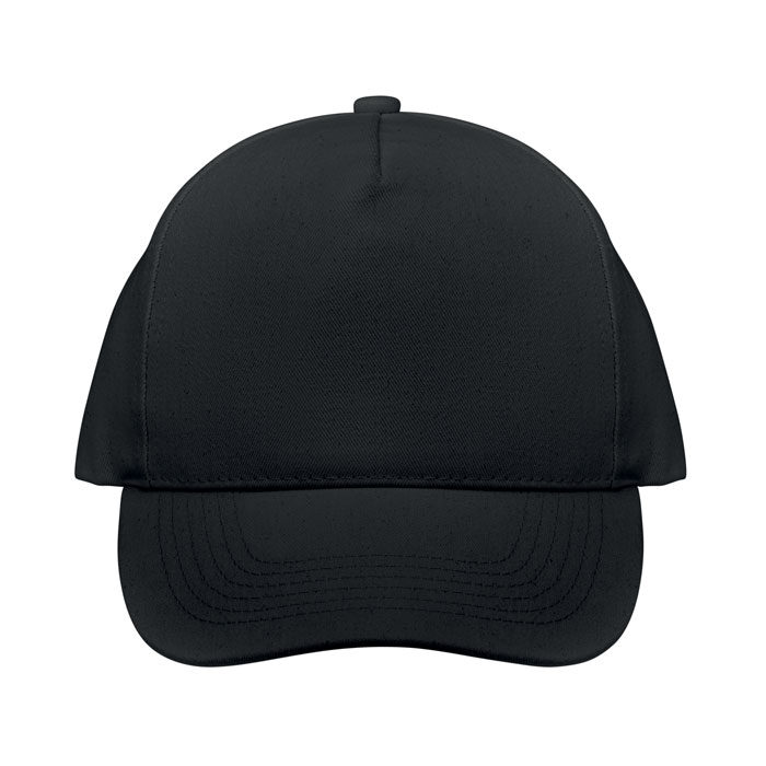 5 panel baseball cap in 250 gr/m² organic brushed cotton with metal adjustable strap back buckle closure.
