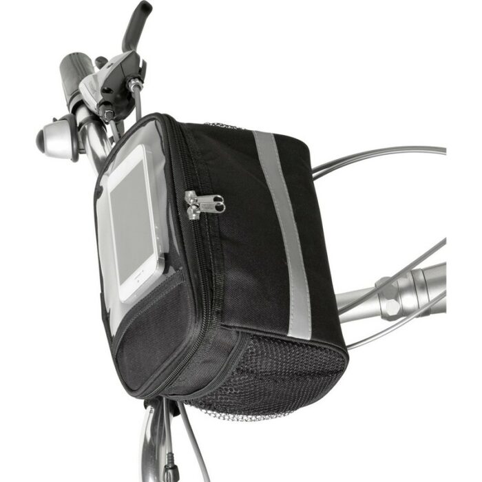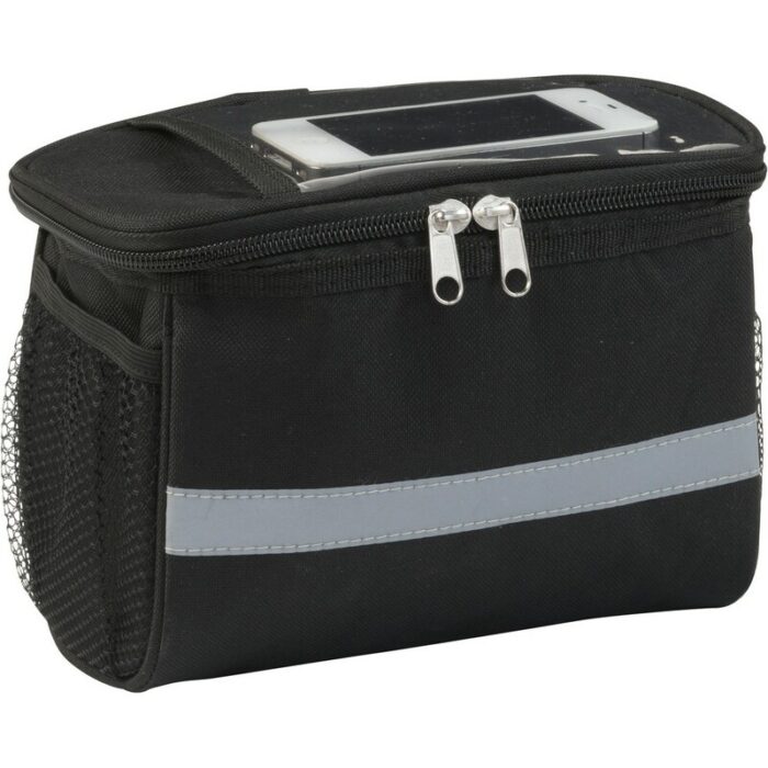 Bicycle zipped cooler bag with PVC pocket on top, reflective strap, mesh pockets on both sides
