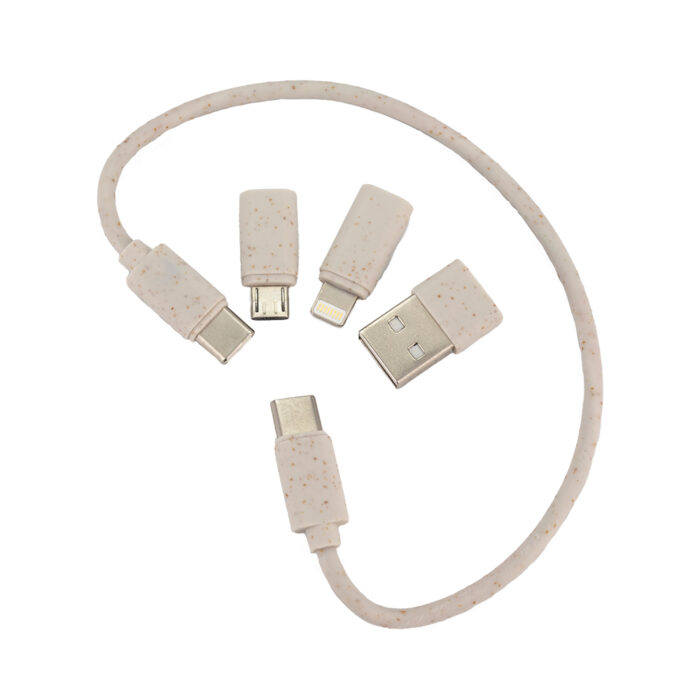 The set includes a CC cable and three additional tips for quick and convenient charging of devices. The whole thing is packed in a wooden box with a lid closed with a magnet, attached to a comfortable lanyard. The set includes the following connectors: USB, micro USB, USB type-cc, USB lightning.