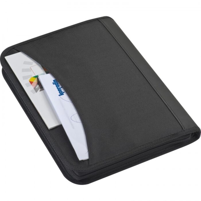 A4 conference folder made of 600 D polyester with note pad and zipper. Additional big and small compartments restore order.