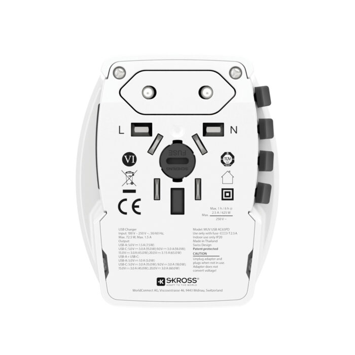 SKROSS World Travel Adapter MUV 65W PD with USB C Cable