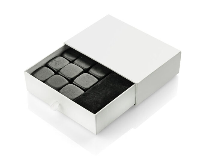 Whisky stones – total novelty on our market – gadget for demanding clients, especially for whisky lovers.This set of 9 special stones completly replaces traditional ice cubes. All you need to do is to leave whisky stones in you freezer for about 4 hours. After this time you may use them as a substitute to ice cubes. The biggest advantages of this gadget over traditional ice cubes are: stones don’t dilute alcohol, you can use them multiple times, they are innovative. Stones are made of natural basalt and are certified for useage with food.