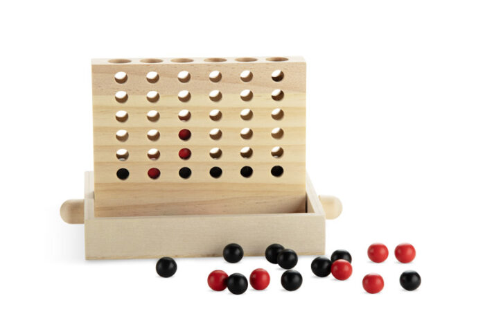 The ZETTO wooden game is a classic “four in a row” skill game made of natural wood. The goal is simple — place the pieces in columns and be the first to line up four in a row horizontally, vertically, or diagonally. ZETTO develops reflexes, logical thinking, and concentration while providing engaging fun for both children and adults. With its elegant wooden design, it also serves as a decorative element for a desk or living room. Perfect for home, office, or promotional events.