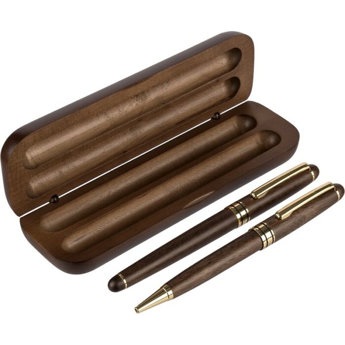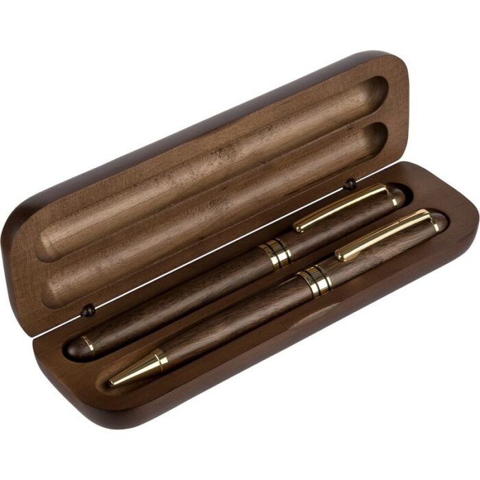 Writing set, ball pen and roller ball, writes in blue appr. 1000 meter writing length for ball pen, appr. 400 m writing length for roller ball, packed individually in brown carton box, product made of metal
