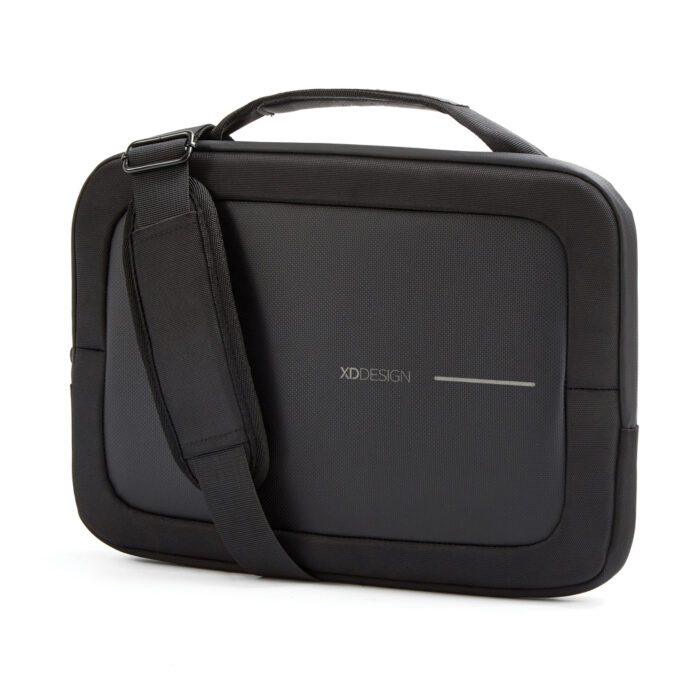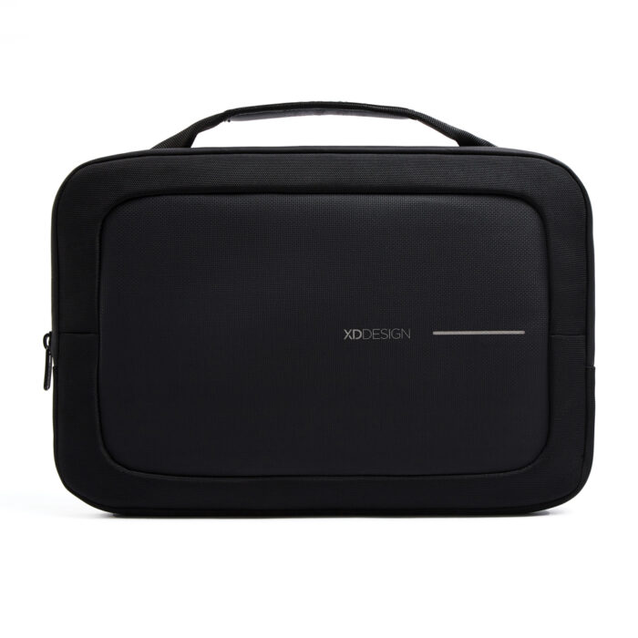 The XD Design 14″ Laptop Bag offers reliable laptop protection. Crafted from R-pet 1200D fabric and textured PU, it features a water-repellent finish. The top handle and shoulder strap provide versatile carrying options, while the rear pocket offers convenient storage for essential items. The waterproof zipper and textured fleece lining add an extra layer of resilience. Made from R-pet fabric with the AWARE™ tracer. With AWARE™, the use of genuine recycled fabric is guaranteed. 17% recycled content.