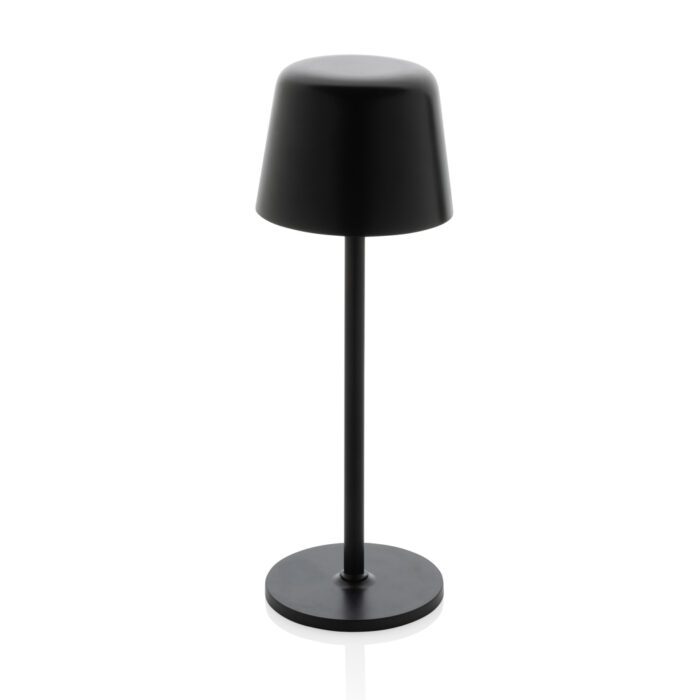 Trendy re-chargeable and portable table lamp that will look good both on your desk or in your living room. Made with RCS certified recycled ABS and metal pole. Total recycled content: 51% based on total item weight. RCS certification ensures a completely certified supply chain of the recycled materials. The table lamp will operate up 8 hours on one single charge and can be re-charged in 3 hours. With integrated 1200 mah A-grade battery, With three modes (warm light, white light and neutral) that can be adjusted by touching the top of the lamp. Rechargeable via USB-C including 80cm recycled TPE charging cable. Packed in FSC® mix packaging. PVC free.