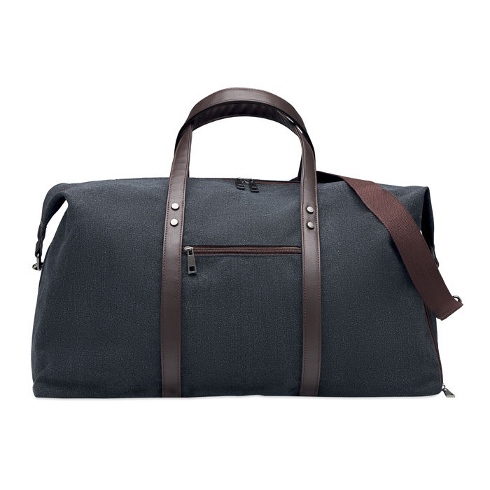 Weekend bag in high quality 450 gr/m² washed canvas with recyled PU details. Lining is in RPET 210D. Strong adjustable and detachable straps included. Perfect hand luggage size.